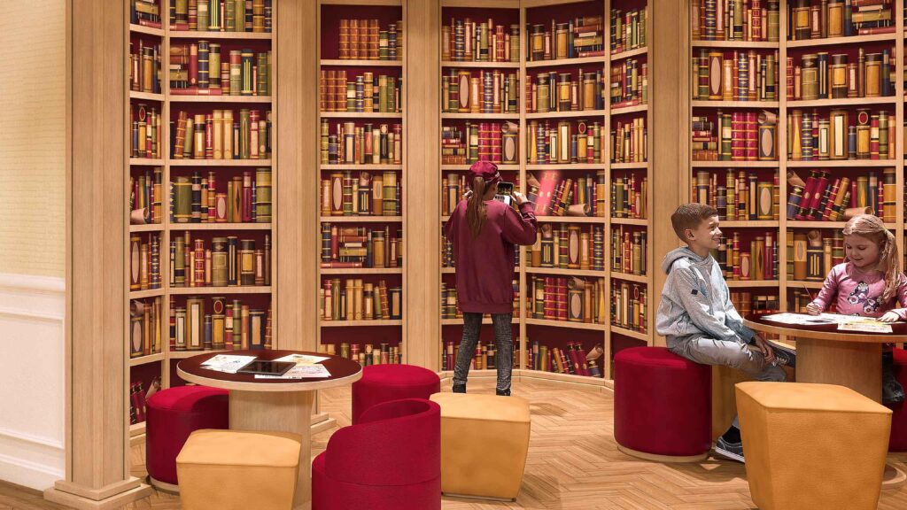 In de Kids Club kunnen kinderen van 4 tot en met 11 jaar zich amuseren met magische activiteiten in de Alcove. Ze ontdekken er interactieve verhalen en creatieve workshops in de Magic Library.